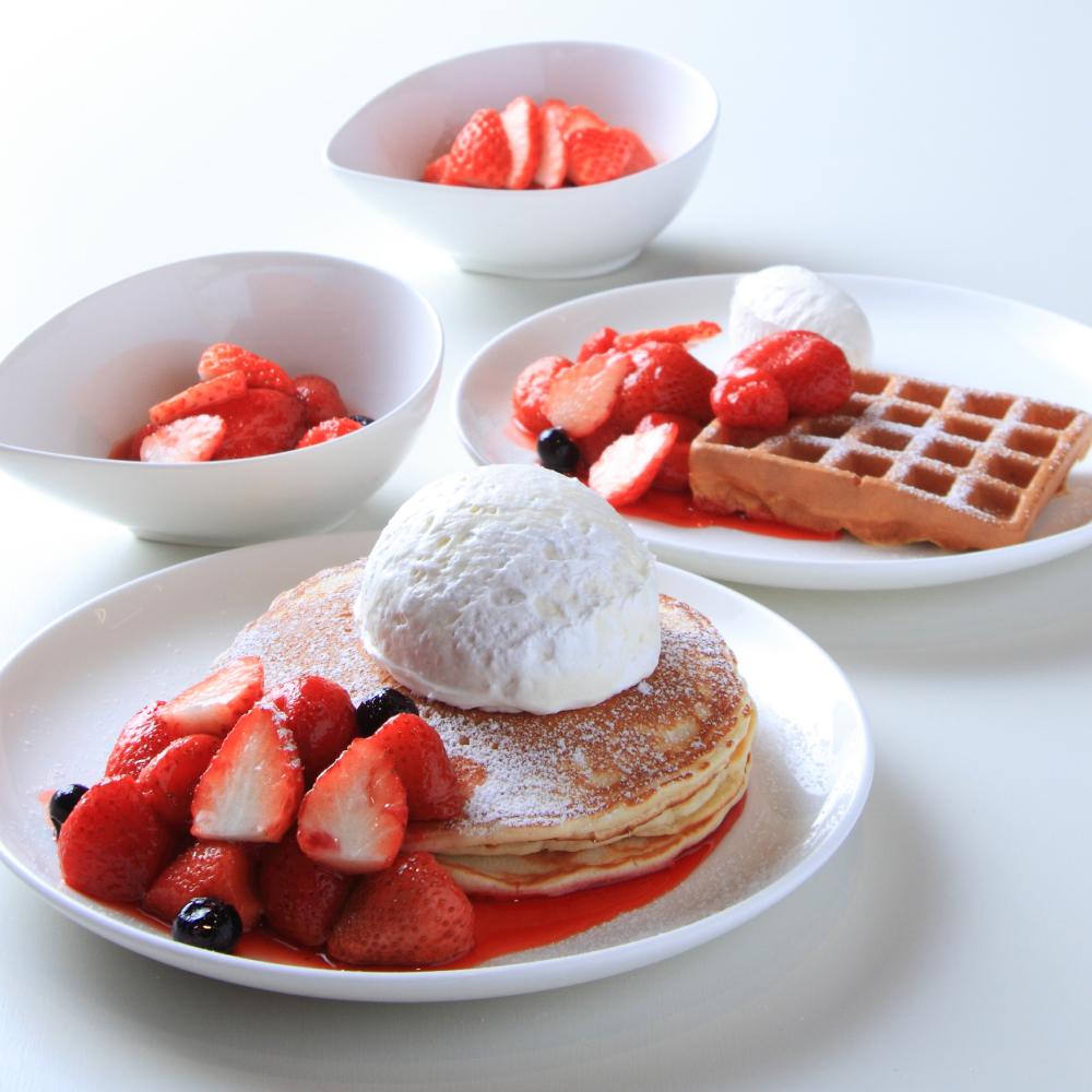 « 春の限定メニュー『自家製いちごソースのパンケーキ』『季節のソースワッフル〈自家製いちごソース〉』登場